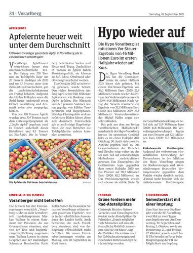 Die Hypo Vorarlberg ist mit einem Vor-Steuer-Ergebnis von 46 Millionen Euro im ersten Halbjahr wieder auf Kurs.