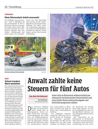 Jurist fuhr in Österreich widerrechtlich jahrelang mit Liechtensteiner Kennzeichen und muss dafür Normverbrauchsabgabe und Kraftfahrzeugsteuer zahlen.