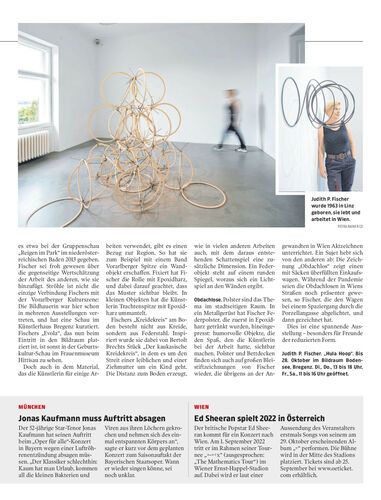 Judith P. Fischer kreiert verschiedene Objekte aus einfachen Formen, die in Beziehung zum Raum treten. Auch Zeichnungen sind zu sehen.