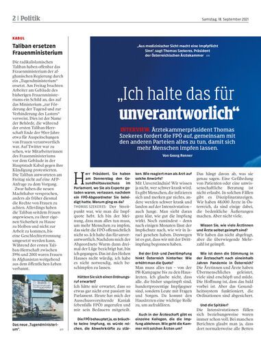 Ärztekammerpräsident Thomas Szekeres fordert die FPÖ auf, gemeinsam mit den anderen Parteien alles zu tun, damit sich mehr Menschen impfen lassen. Von Georg Renner