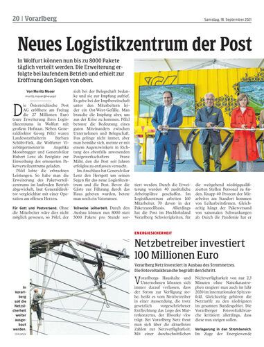 In Wolfurt können nun bis zu 8000 Pakete täglich verteilt werden. Die Erweiterung erfolgte bei laufendem Betrieb und erhielt zur Eröffnung den Segen von oben.