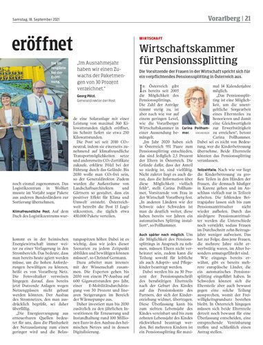 Die Vorsitzende der Frauen in der Wirtschaft spricht sich für ein verpflichtendes Pensionssplitting in Österreich aus.