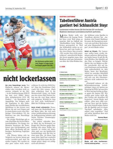 Tabellenführer Austria gastiert bei Schlusslicht Steyr