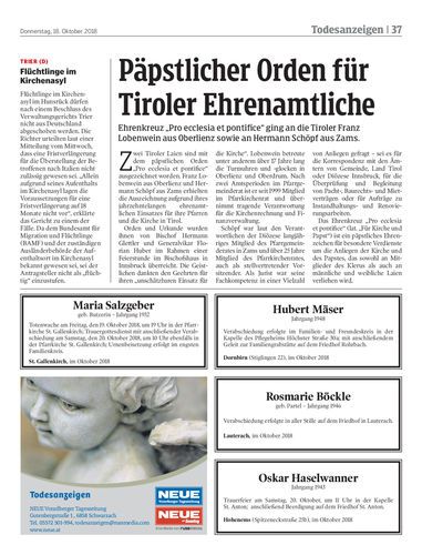 Lobenwein aus Oberlienz sowie an Hermann Schöpf aus Zams.