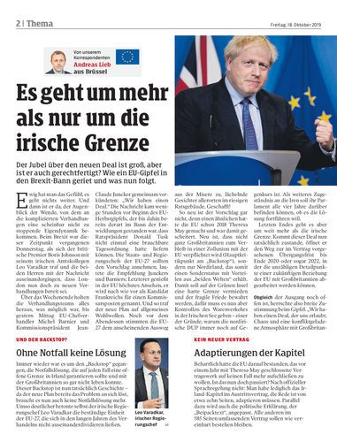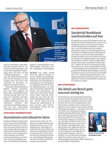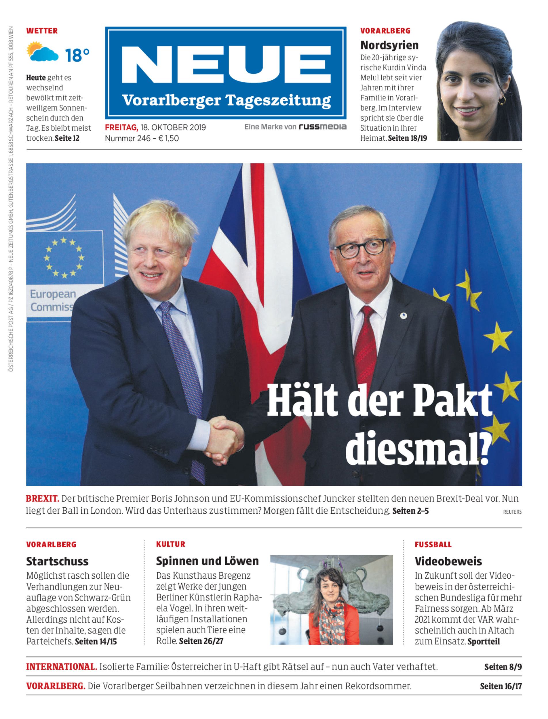 Brexit. Der britische Premier Boris Johnson und EU-Kommissionschef Juncker stellten den neuen Brexit-Deal vor. Nun liegt der Ball in London. Wird das Unterhaus zustimmen? Morgen fällt die Entscheidung. Seiten 2–5 REUTERS
