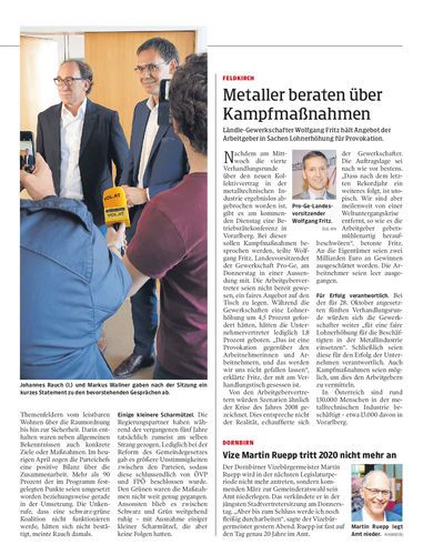 Ländle-Gewerkschafter Wolfgang Fritz hält Angebot der Arbeitgeber in Sachen Lohnerhöhung für Provokation.