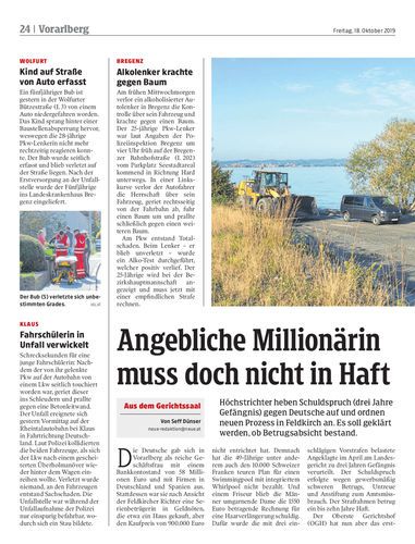 Höchstrichter heben Schuldspruch (drei Jahre Gefängnis) gegen Deutsche auf und ordnen neuen Prozess in Feldkirch an. Es soll geklärt werden, ob Betrugsabsicht bestand.