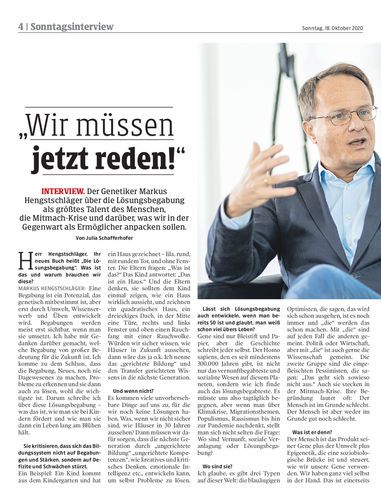 Interview. Der Genetiker Markus Hengstschläger über die Lösungsbegabung als größtes Talent des Menschen, die Mitmach-Krise und darüber, was wir in der Gegenwart als Ermöglicher anpacken sollen. Von Julia Schafferhofer