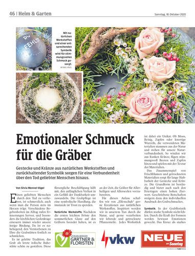 Gestecke und Kränze aus natürlichen Werkstoffen und zurückhaltender Symbolik sorgen für eine Verbundenheit über den Tod geliebter Menschen hinaus.