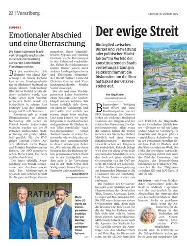 Bindeglied zwischen Bürger und Verwaltung oder politischer Machtfaktor? Im Vorfeld der konstituierenden Stadtvertretungssitzung in Feldkirch flammt die Diskussion um die Sinnhaftigkeit der Ortsvorsteher auf.