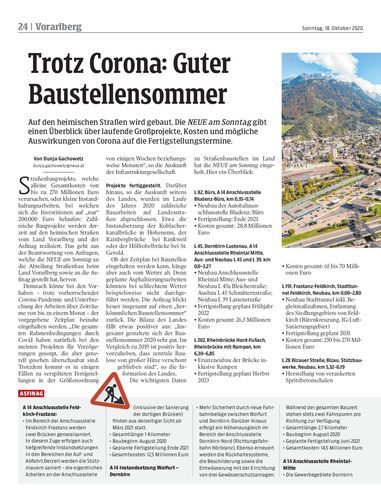 Auf den heimischen Straßen wird gebaut. Die NEUE am Sonntag gibt einen Überblick über laufende Großprojekte, Kosten und mögliche Auswirkungen von Corona auf die Fertigstellungstermine.