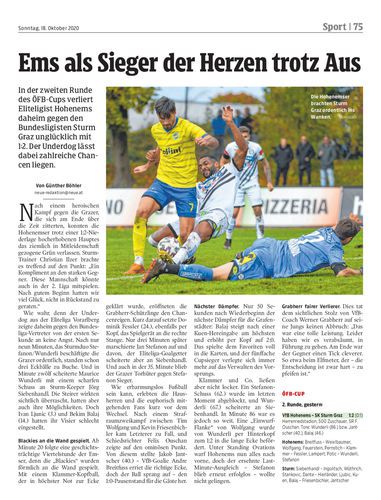 In der zweiten Runde des ÖFB-Cups verliert Eliteligist Hohenems daheim gegen den Bundesligisten Sturm Graz unglücklich mit 1:2. Der Underdog lässt dabei zahlreiche Chancen liegen.
