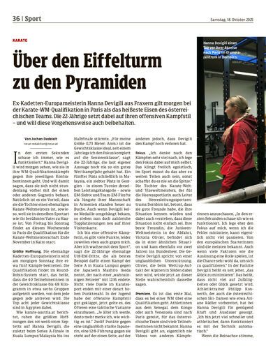 Ex-Kadetten-Europameisterin Hanna Devigili aus Fraxern gilt morgen bei der Karate-WM-Qualifikation in Paris als das heißeste Eisen des österreichischen Teams. Die 22-Jährige setzt dabei auf ihren offensiven Kampfstil – und will diese Vorgehensweise auch beibehalten.