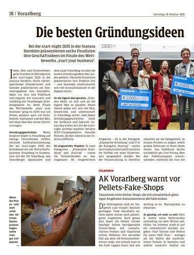 Bei der start-night 2025 in der Inatura Dornbirn präsentierten sechs Finalisten ihre Geschäftsideen im Finale des Wettbewerbs „start your business“.