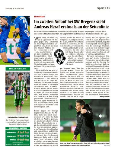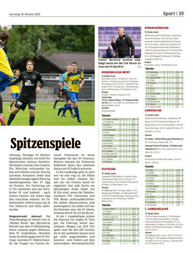 Heute kommt es in der 13. Runde der Regionalliga West zum Duell zwischen den Altach Juniors und dem FC Dornbirn. Um die Vorherrschaft in der Eliteliga geht es morgen, wenn Wolfurt und Admira Dornbirn aufeinandertreffen.
