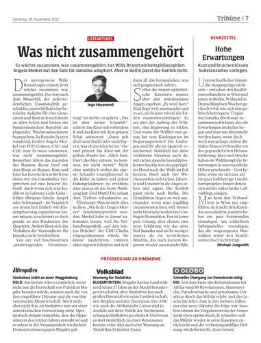 Es wächst zusammen, was zusammengehört, hat Willy Brandt einheitsphilosophiert. Angela Merkel hat den Satz für Jamaika adaptiert. Aber in Berlin passt die Karibik nicht.