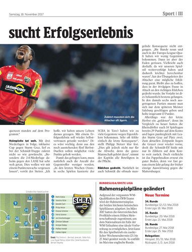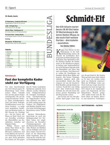 Der SCR Altach startet heute (18.30 Uhr) beim SV Mattersburg in die letzte Herbst-Phase, in der noch fünf weitere Partien – drei daheim – ausstehen.