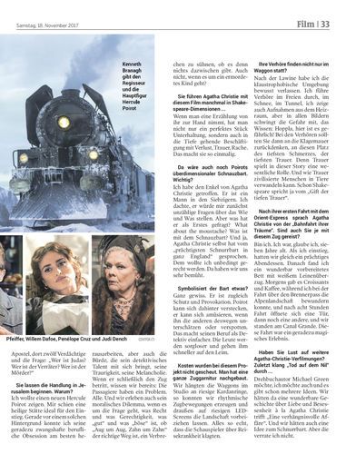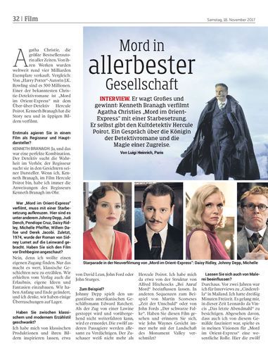 Er wagt Großes und gewinnt: Kenneth Branagh verfilmt Agatha Christies „Mord im Orient-Express“ mit einer Starbesetzung. Er selbst gibt den Kultdetektiv Hercule Poirot. Ein Gespräch über die Königin der Detektivromane und die Magie einer Zugreise. Von Luigi Heinrich, Paris