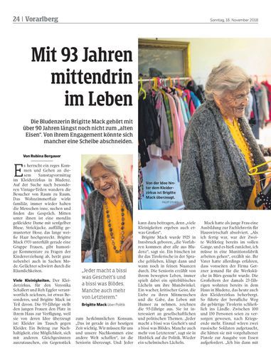 Die Bludenzerin Brigitte Mack gehört mit über 90 Jahren längst noch nicht zum „alten Eisen“. Von ihrem Engagement könnte sich mancher eine Scheibe abschneiden.