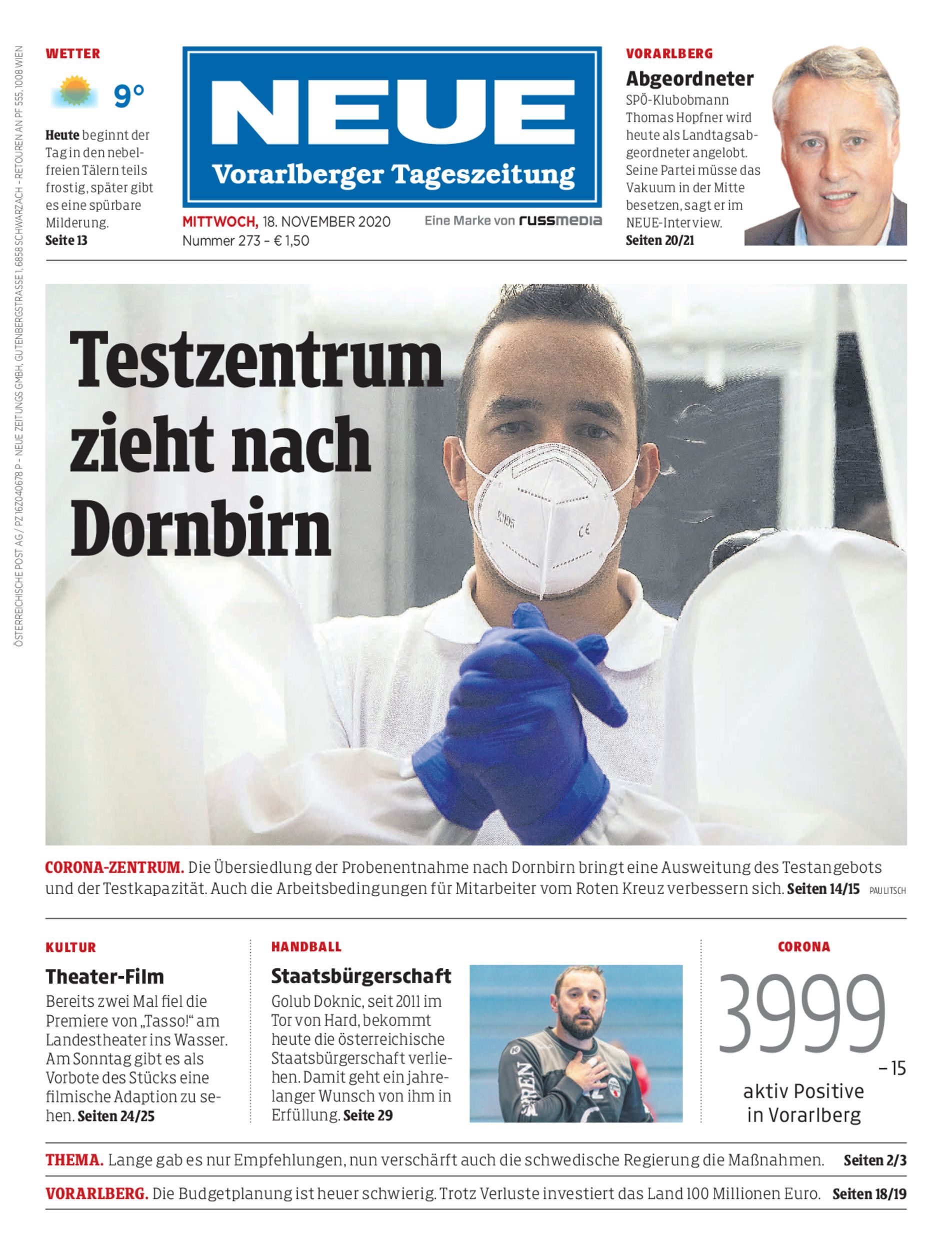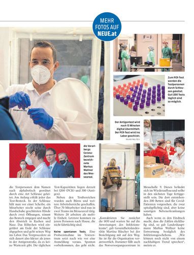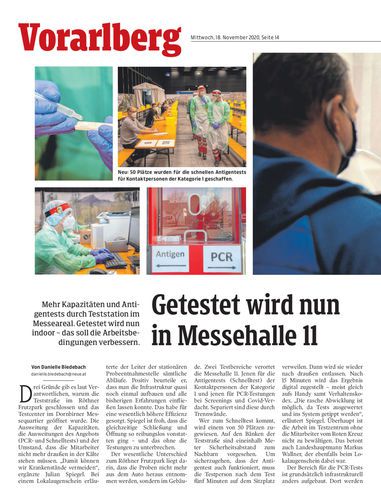Corona-Zentrum. Die Übersiedlung der Probenentnahme nach Dornbirn bringt eine Ausweitung des Testangebots und der Testkapazität. Auch die Arbeitsbedingungen für Mitarbeiter vom Roten Kreuz verbessern sich. Seiten 14/15 Paulitsch