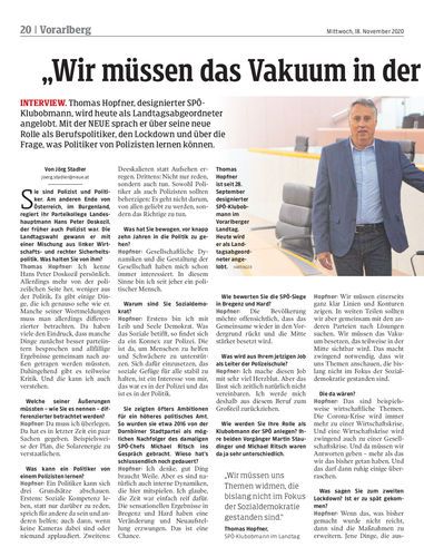 Interview. Thomas Hopfner, designierter SPÖ-Klubobmann, wird heute als Landtagsabgeordneter angelobt. Mit der NEUE sprach er über seine neue Rolle als Berufspolitiker, den Lockdown und über die Frage, was Politiker von Polizisten lernen können.