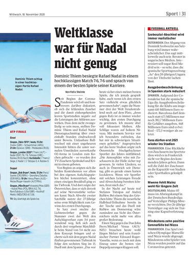 Dominic Thiem besiegte Rafael Nadal in einem hochklassigen Match 7:6, 7:6 und sprach von einem der besten Spiele seiner Karriere.