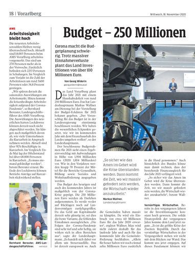 Corona macht die Budgetplanung schwierig. Trotz massiver Einnahmeverluste plant das Land Investitionen von über 100 Millionen Euro.