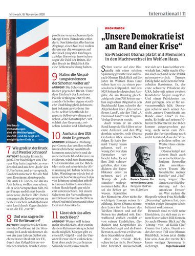 Ex-Präsident Obama platzt mit Memoiren in den Machtwechsel im Weißen Haus.