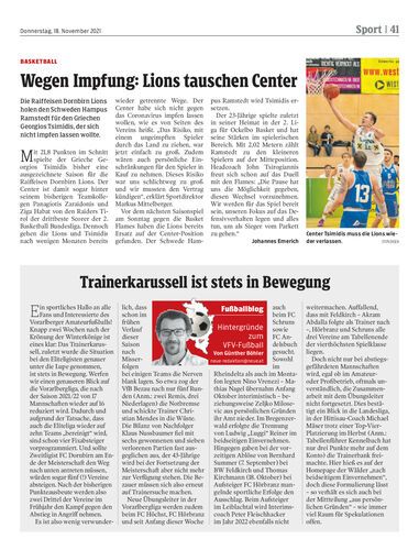 Die Raiffeisen Dornbirn Lions holen den Schweden Hampus Ramstedt für den Griechen Georgios Tsimidis, der sich nicht impfen lassen wollte.