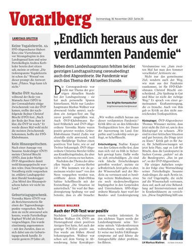 Neben Landeshauptmann Markus Wallner fehlten bei der gestrigen Landtagssitzung Corona-bedingt auch drei Abgeordnete. Die Pandemie war auch das Thema der Aktuellen Stunde.
