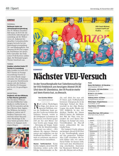 In der Vorarlberghalle hat Tabellennachzügler VEU Feldkirch am heutigen Abend (19.30 Uhr) den HC Gherdeina, der 19 Punkte mehr auf dem Konto hat, zu Besuch.