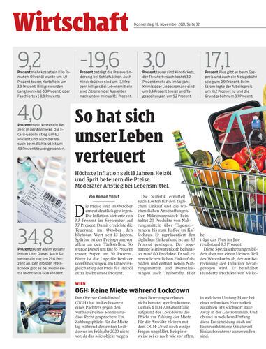 Höchste Inflation seit 13 Jahren. Heizöl und Sprit befeuern die Preise. Moderater Anstieg bei Lebensmittel.