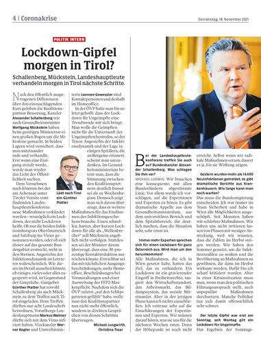 Schallenberg, Mückstein, Landeshauptleute verhandeln morgen in Tirol nächste Schritte.