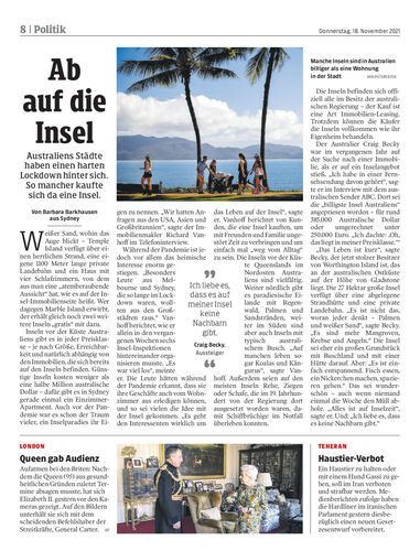 Australiens Städte haben einen harten Lockdown hinter sich. So mancher kaufte sich da eine Insel.