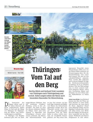 Hertha Glück und Gerhard Vylet wandern von Thüringen nach Thüringerberg und zurück. Dabei sorgen neben der Natur auch besondere Bauwerke für Abwechslung.