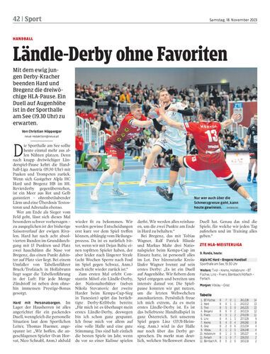 Mit dem ewig jungen Derby-Kracher beenden Hard und Bregenz die dreiwöchige HLA-Pause. Ein Duell auf Augenhöhe ist in der Sporthalle am See (19.30 Uhr) zu erwarten.