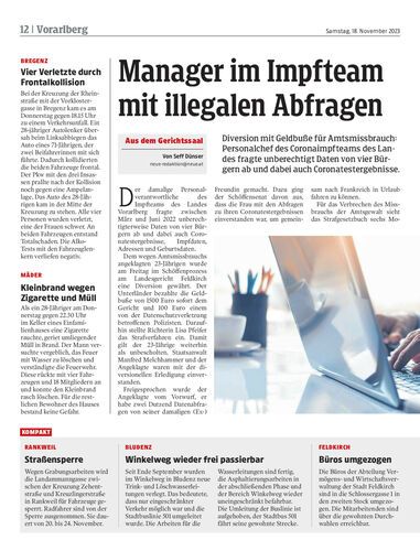 Diversion mit Geldbuße für Amtsmissbrauch: Personalchef des Coronaimpfteams des Landes fragte unberechtigt Daten von vier Bürgern ab und dabei auch Coronatestergebnisse.