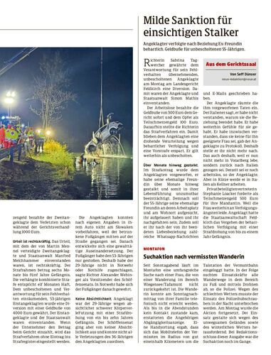 Angeklagter verfolgte nach Beziehung Ex-Freundin beharrlich. Geldbuße für unbescholtenen 55-Jährigen.