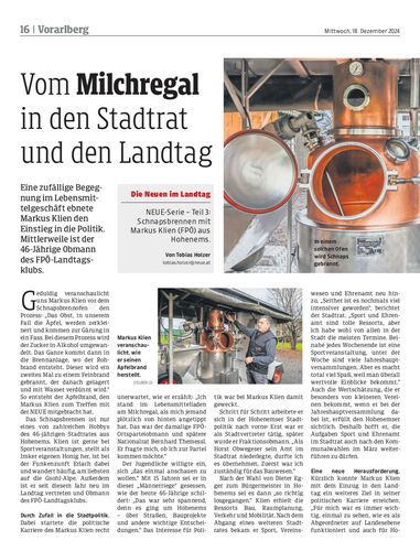 Eine zufällige Begegnung im Lebensmittelgeschäft ebnete Markus Klien den Einstieg in die Politik. Mittlerweile ist der 46-Jährige Obmann des FPÖ-Landtagsklubs.
