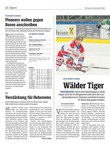 Die Pioneers Vorarlberg empfangen heute im Heimspiel mit dem HC Bozen den Tabellenzweiten der ICE Hockey League.