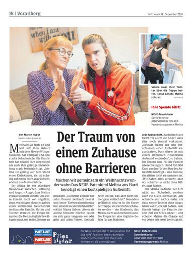 Machen wir gemeinsam ein Weihnachtswunder wahr: Das NEUE-Patenkind Melina aus Hard benötigt einen kostspieligen Außenlift.