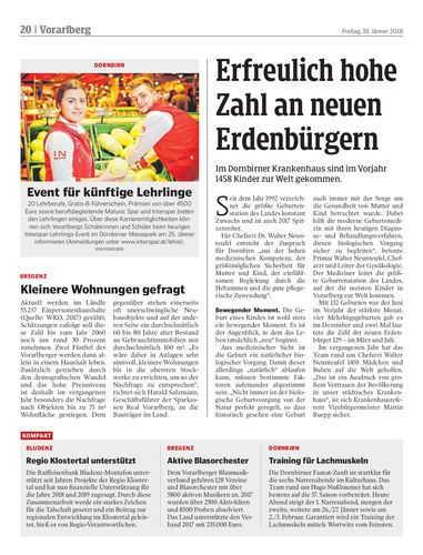 Im Dornbirner Krankenhaus sind im Vorjahr 1458 Kinder zur Welt gekommen.