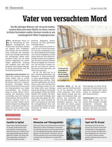 Ein 86-jähriger Wiener soll versucht haben, seinen Sohn mit einer Waffe zu töten, weil er in Ruhe fernsehen wollte. Gestern wurde er am Landesgericht Wien freigesprochen.