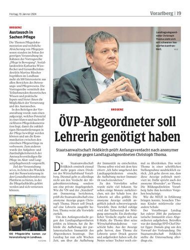 Staatsanwaltschaft Feldkirch prüft Anfangsverdacht nach anonymer Anzeige gegen Landtagsabgeordneten Christoph Thoma.