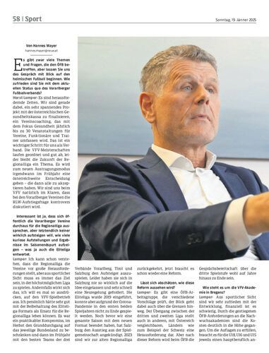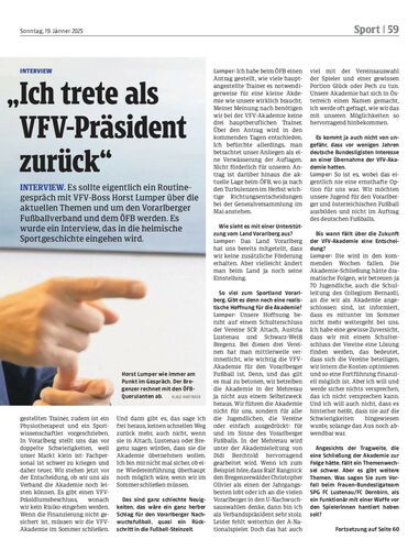 Interview. Es sollte eigentlich ein Routinegespräch mit VFV-Boss Horst Lumper über die aktuellen Themen und um den Vorarlberger Fußballverband und dem ÖFB werden. Es wurde ein Interview, das in die heimische Sportgeschichte eingehen wird.