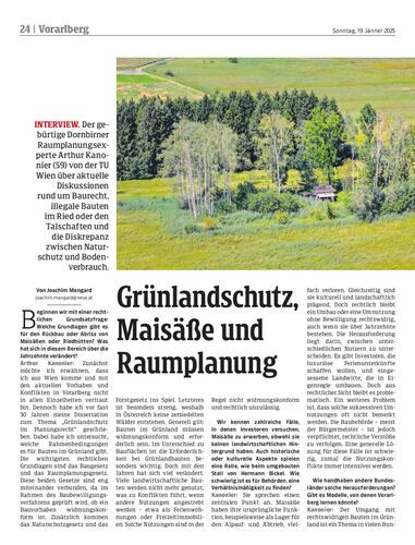 Interview. Der gebürtige Dornbirner Raumplanungsexperte Arthur Kanonier (59) von der TU Wien über aktuelle Diskussionen rund um Baurecht, illegale Bauten im Ried oder den Talschaften und die Diskrepanz zwischen Naturschutz und Bodenverbrauch.