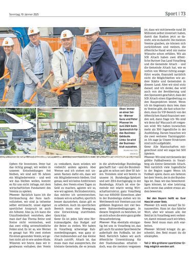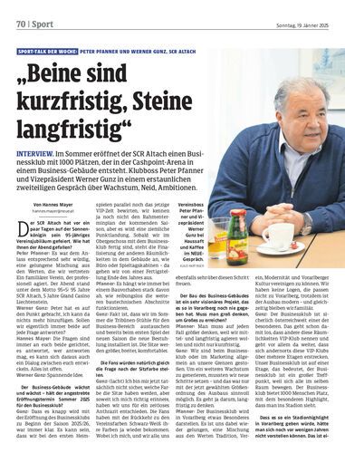 Interview. Im Sommer eröffnet der SCR Altach einen Businessklub mit 1000 Plätzen, der in der Cashpoint-Arena in einem Business-Gebäude entsteht. Klubboss Peter Pfanner und Vizepräsident Werner Gunz in einem erstaunlichen zweiteiligen Gespräch über Wachstum, Neid, Ambitionen.