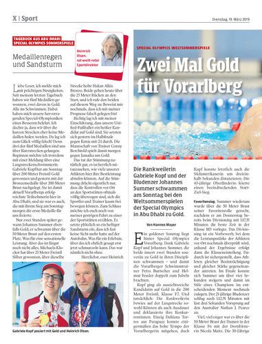 Die Rankweilerin Gabriele Kopf und der Bludenzer Johannes Summer schwammen am Sonntag bei den Weltsommerspielen der Special Olympics in Abu Dhabi zu Gold.