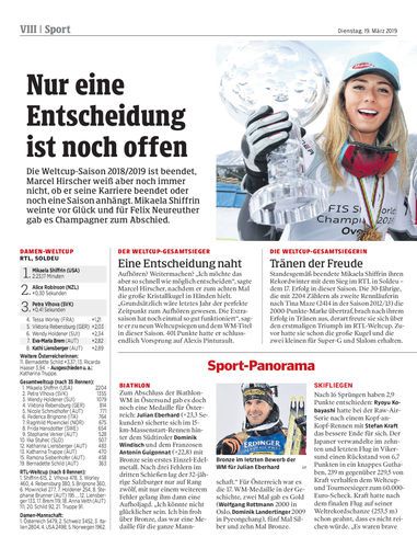 Die Weltcup-Saison 2018/2019 ist beendet, Marcel Hirscher weiß aber noch immer nicht, ob er seine Karriere beendet oder noch eine Saison anhängt. Mikaela Shiffrin weinte vor Glück und für Felix Neureuther gab es Champagner zum Abschied.