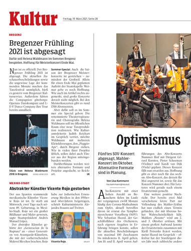 Dafür soll Helena Waldmann im Sommer Bregenz bespielen. Hoffung für Meisterkonzert Ende Mai.